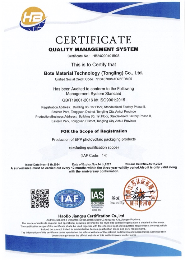 博特材料科技(铜陵)有限公司始创于2016年,是一家专业从事EPP制品生产及一体式包装整合方案的企业。公司面向全球品牌商,针对项目设计、落地生产、使用工况三大环节,研发具有行业竞争力的差异化绿色产品和解决方案,提供一站式OEM/ODM合作服务。